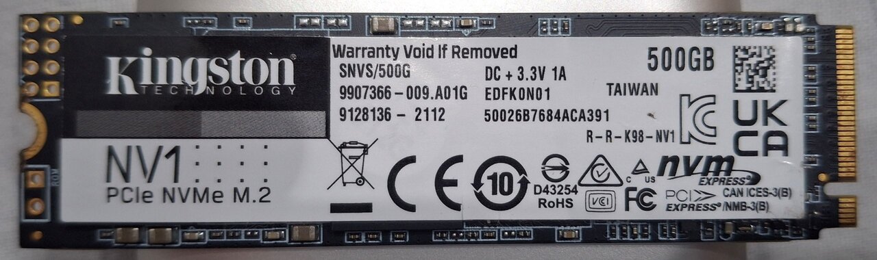 (1 и 2 фото) 500 ГБKingston ssd NV1 PCIe NVMe M.2-4990 рублей
