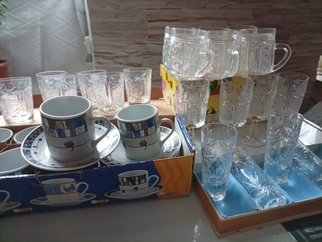 Продам посуду: Наборы тарелок — новые, детский набор тарелок + чашка- новые.Чашки кофейные — 6 шт, новые. Хрустальные бокалы -6 шт, рюмки- 12 шт, рюмки на ножке — 4 шт. Есть хрустальные салатницы. Цена договорная. г. Енакиево
