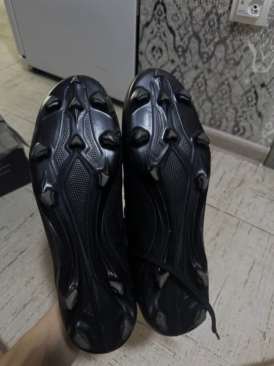 Состояние хорошее : играл полгода, минимальный износ шипов и верха, лежат до сих пор . Без дыр, трещин, полностью функциональны