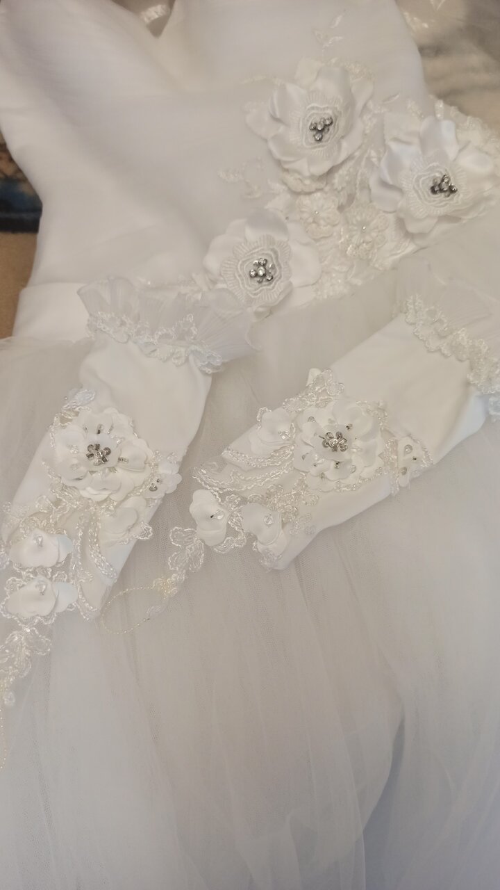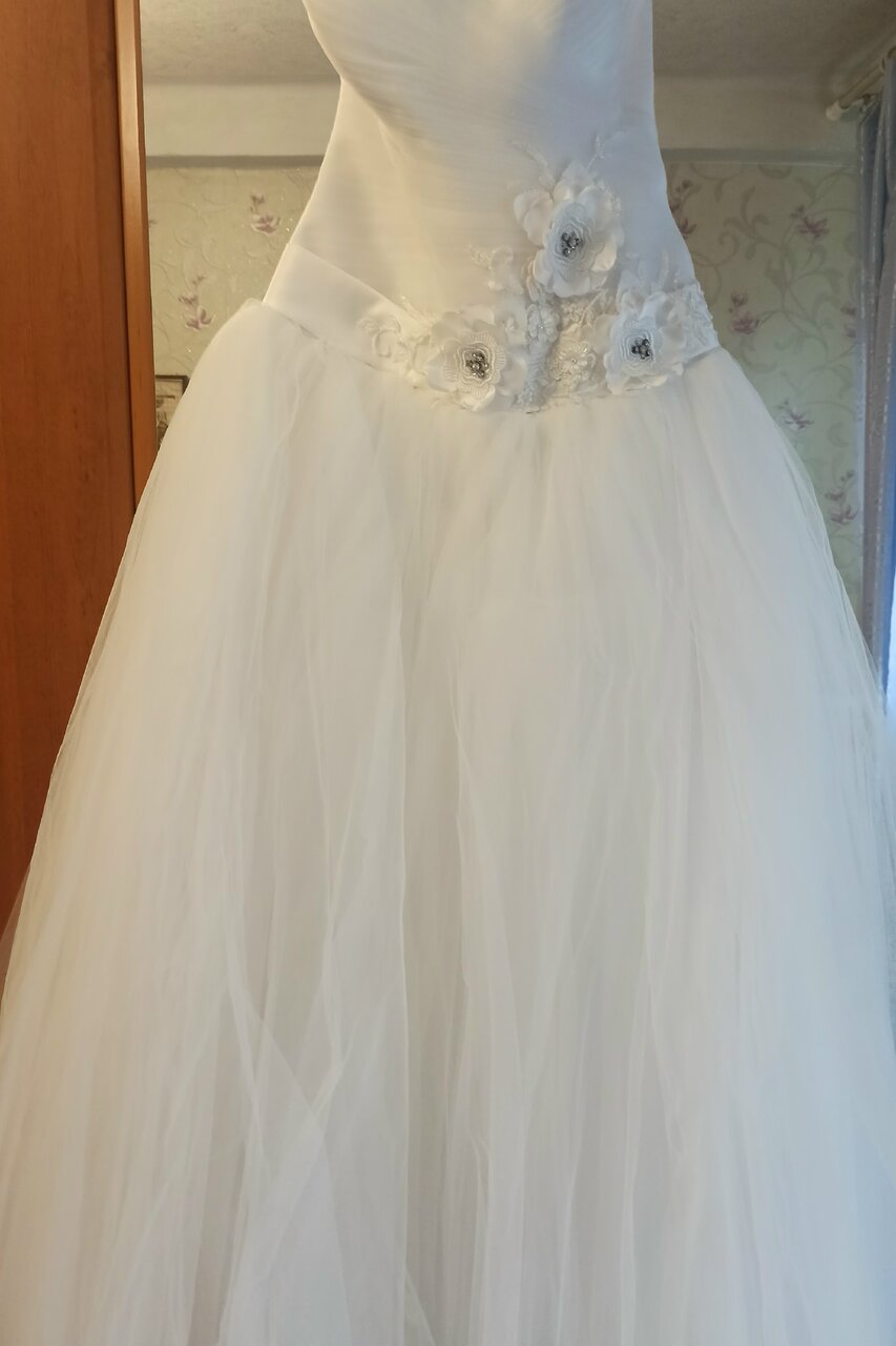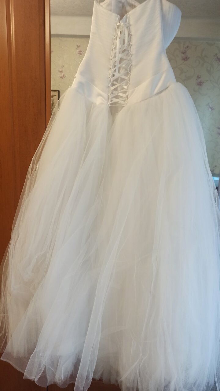 Продам свадебное платье, одевалось один раз, не венчаное, в подарок перчатки, размер 44-48, 5000 рублей,( торг) телефон+79493367530г.Горловка