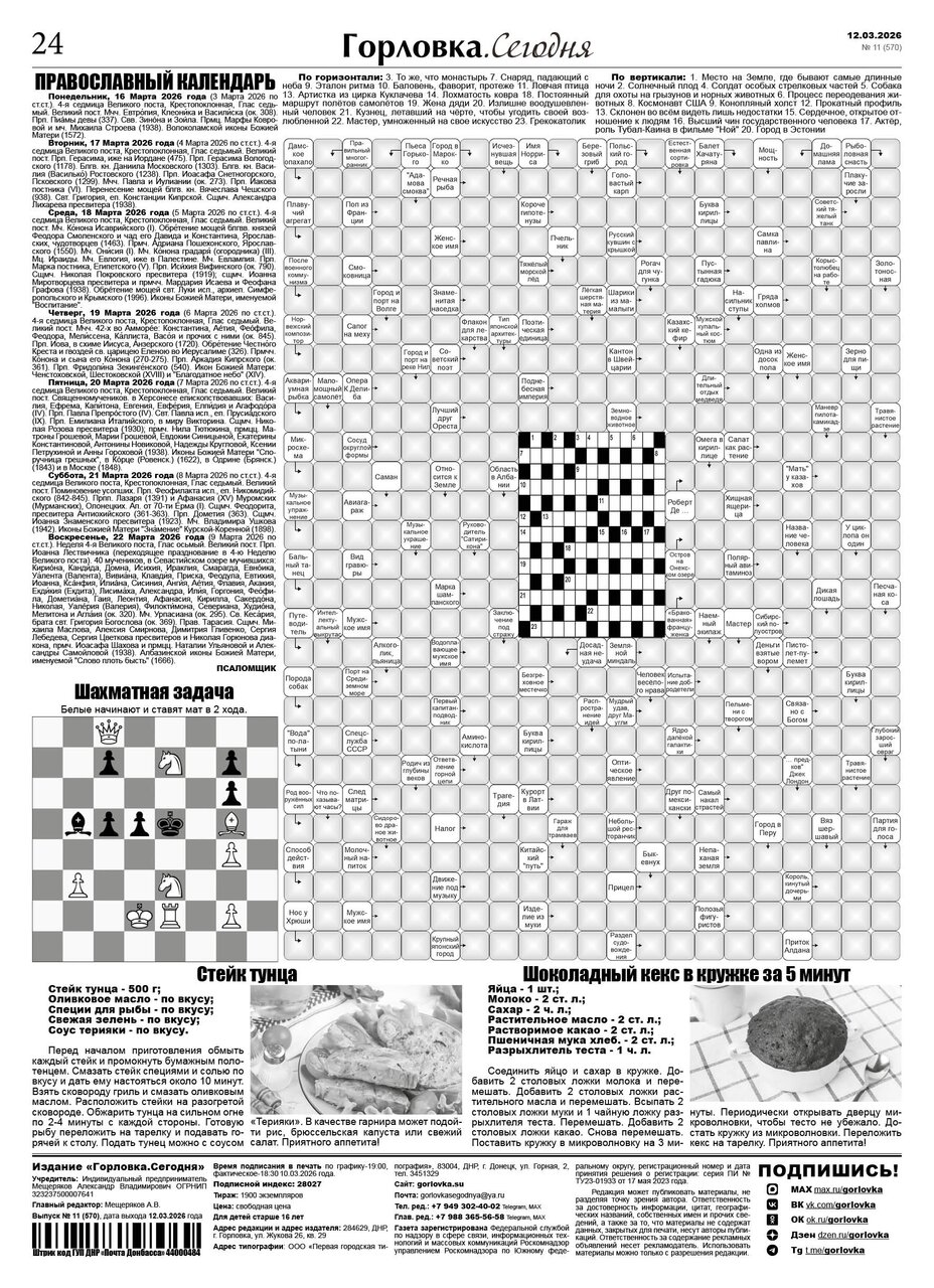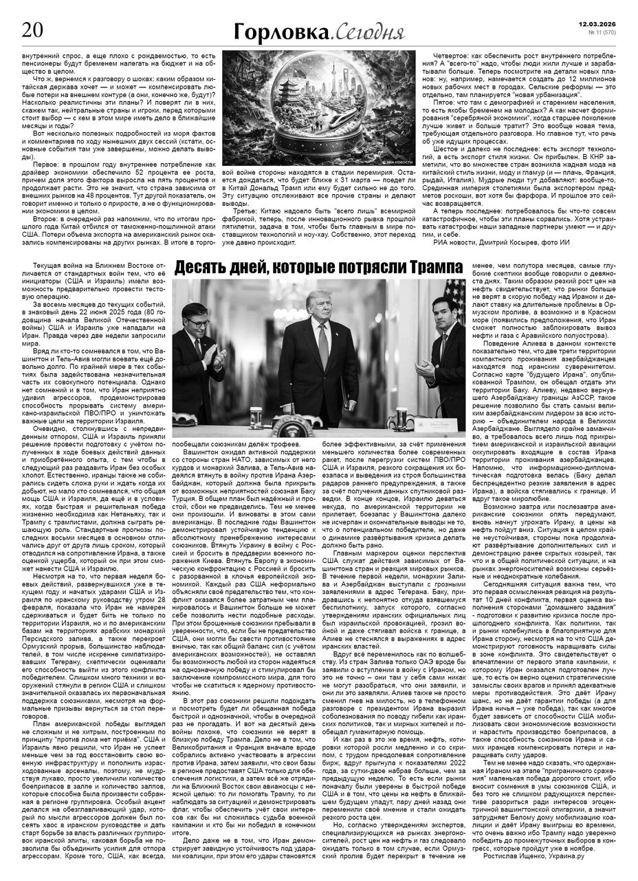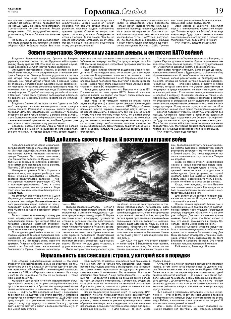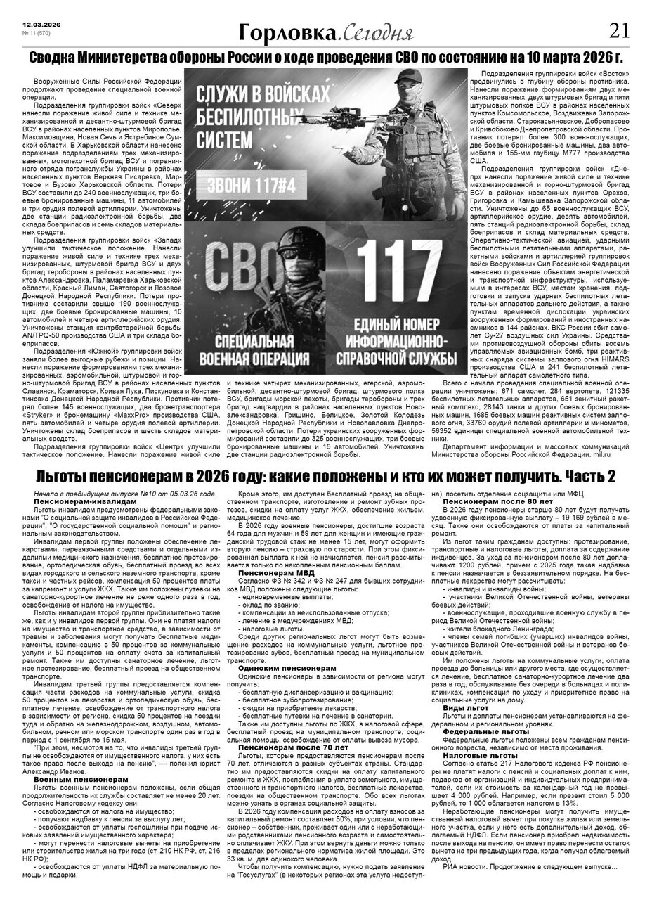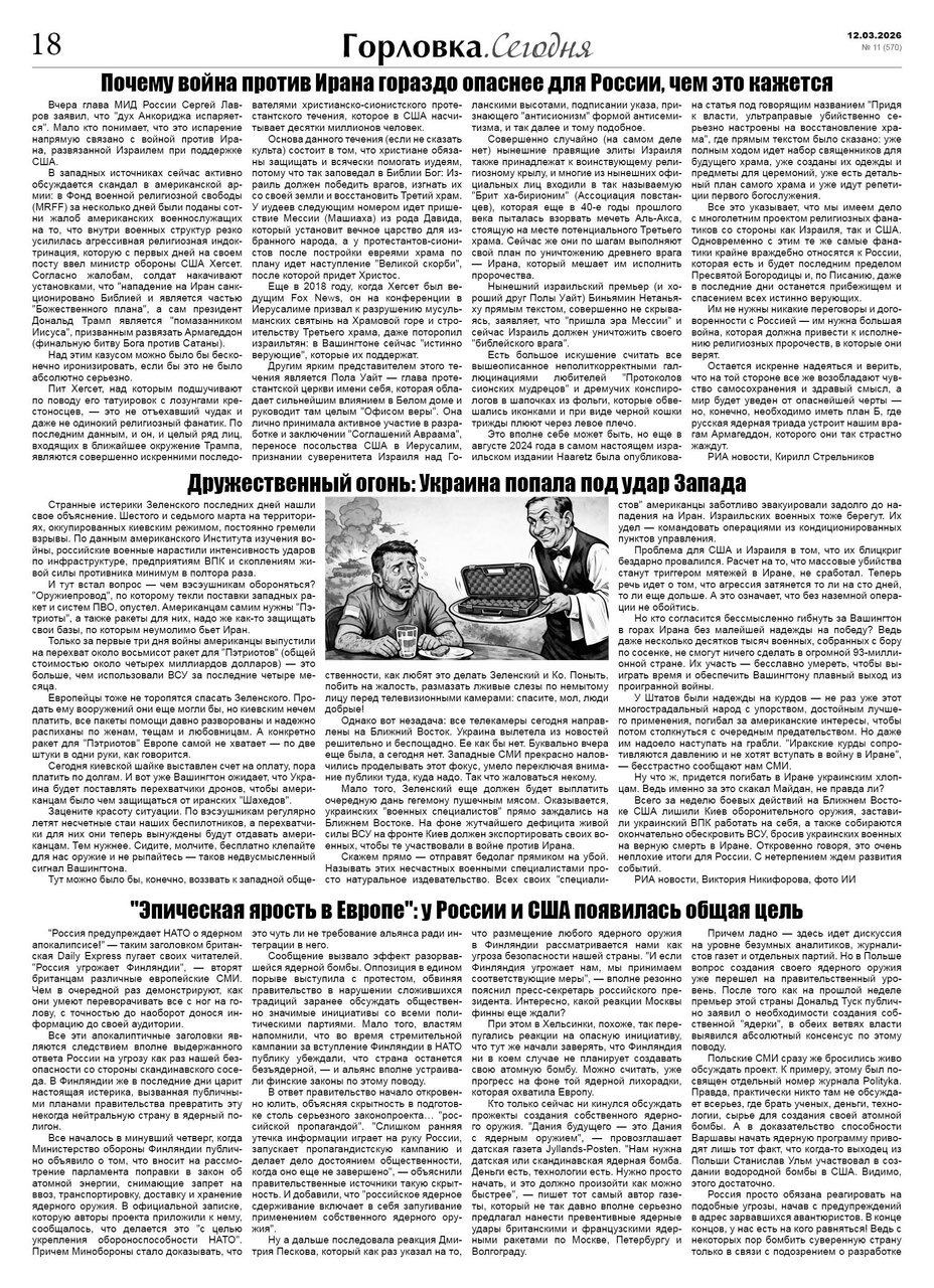 🗞 12 марта 2026 года, вышел новый выпуск общественно-информационной газеты «Горловка.Сегодня» 🇷🇺 №11 (570). 24 полосы, тираж 1900 экз., газета выходит каждый четверг. 📰 t.me/gorlovka