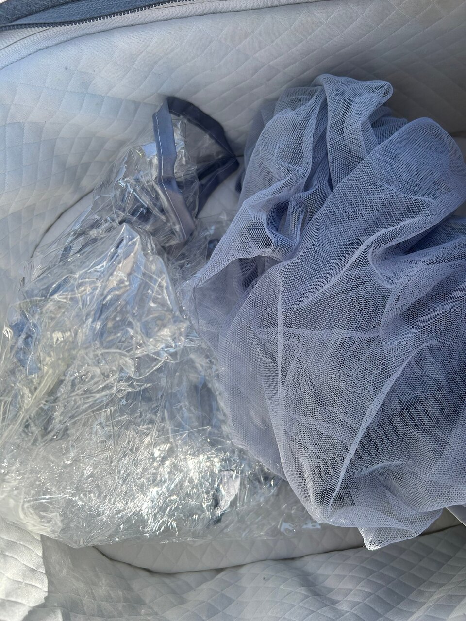 В комплекте дождевик и москитка, на каждый блок есть зимние накидки.