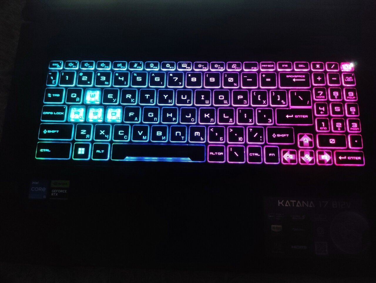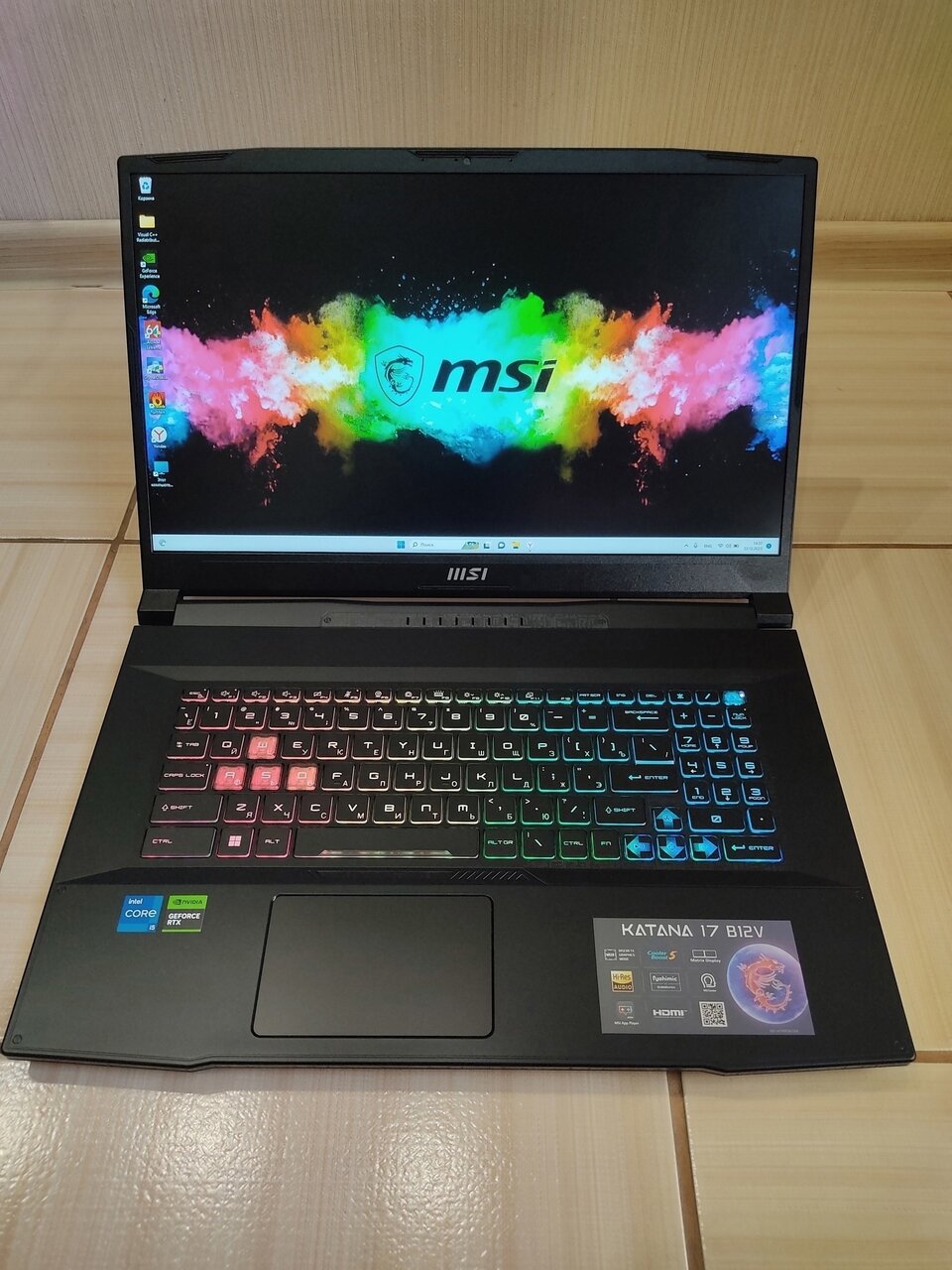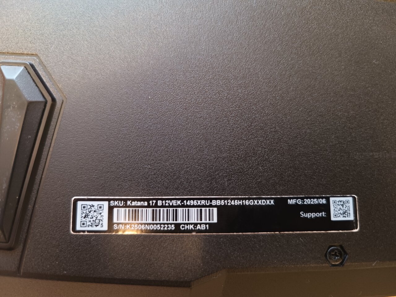 Практически НОВЫЙ ИГРОВОЙ ноутбук MSI Katana 17 B12VEK-1495XRU (17.3 Дюйма).MSI GF76 Katana 17 B12VEK🔥🇷🇺💣- это шаг в будущее- игровой ноутбук (06/2025г.)- заводская дата. НОУТБУК ИДЁТ КАК ВИТРИННЫЙ ОБРАЗЕЦ- МИНИМАЛЬНАЯ НАРАБОТКА- НОУТБУК НЕ Вскрывался- заводская пломба на месте)- DDR5 оперативная память, два слота под SSD типа M2, шикарная IPS матрица с максимальной частотой обновления экрана 144 Гц , как всегда и у всех MSI- качественная клавиатура-мягкий ход клавиш, приятным бонусом будет идти шикарная RGB подсветка- всех цветов радуги, вишенкой на торте будет мощней дискретная карта GeForce NVIDIA GeForce RTX 4050- при чём в своей максимальной комплектации- это 105 Ватт- карта выдаёт до 220 Fps в стресс-тесте Furmark. На ноутбуке установлены игры Cybepank-2077🔥 И многие другие