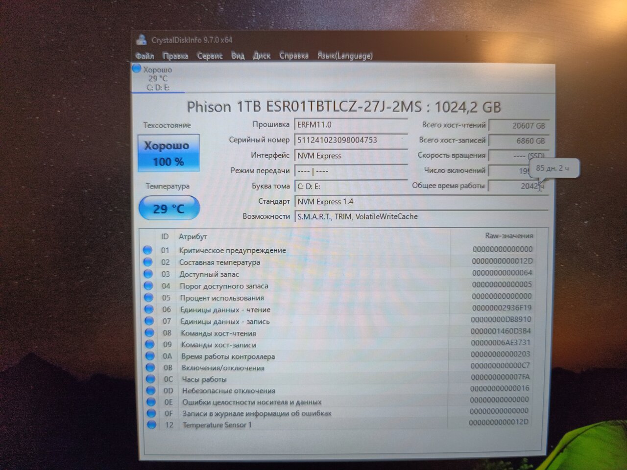 📌Накопитель: Родной стоит SSD типа M2 NWMe -1024Гб (Phison-85 Дней наработки), можно доустановить ещё один SSD NWMe