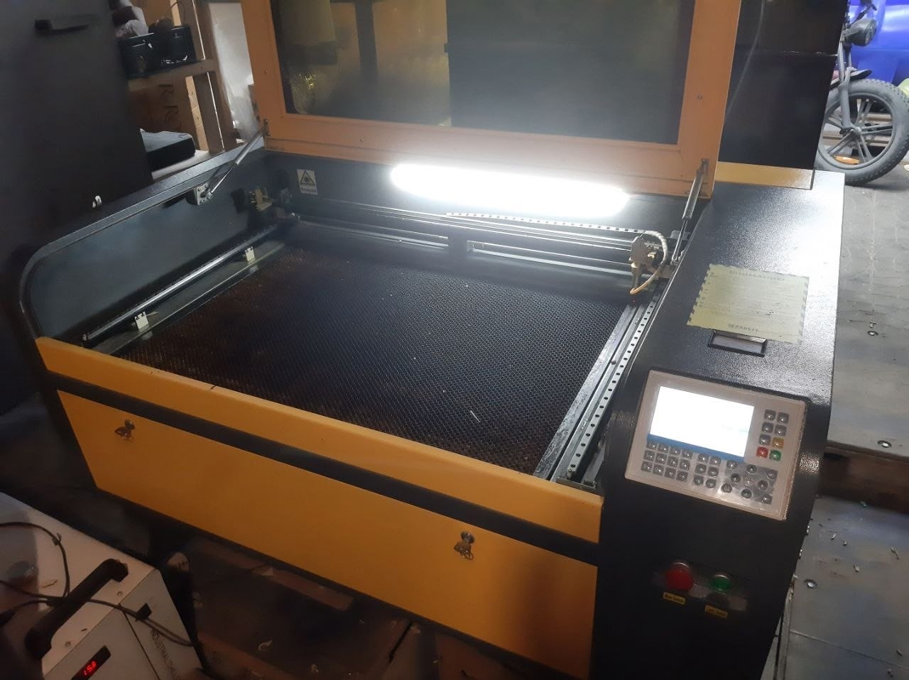Продам 2 лазерных ЧПУ станка одним лотом. Один — с рабочим полем: 90х60см, трубка 75 ват, фирма «Zareff». Отработал не много времени. Второй станок с рабочим полем: 40х40см, трубка 90ват, стоит мощный блок розжига, менялся вместе с трубкой, применялся крайне редко, так как есть основной станок, который выполняет основную работу. К станкам идёт помпа и охладитель дистиллированной воды, антифриз не заливался! Так же компьютер стационарный с базой макетов и установленными программами. Ламели, сотовый стол, стабилизатор. Для того, чтобы начать работать, вам нужна только вытяжка (вентиляция). Оборудование исправно и готово к выполнению поставленых задач.