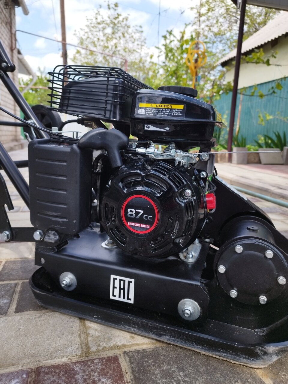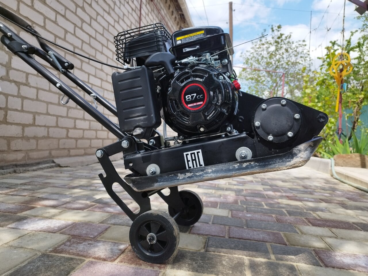 Мощность — 2050 Вт. Макс. глубина уплотнения — 20 см, размер рабочей плиты (495х320)мм, ёмкость бака 1.6 л. Складная ручка,колесики для перемещения.