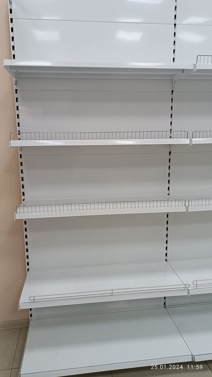 Продам металлические пристенные стеллажи в идеальном состоянии. Цена 2,25м*1м. — 9000р. за один. продажа от 5 шт. В комплект входит: задняя панель-5 шт. стойка -1 шт. полка 30 см- 2шт. полка 40 см- 2 шт. с кронштейнами. основание 50 см- 1 шт.