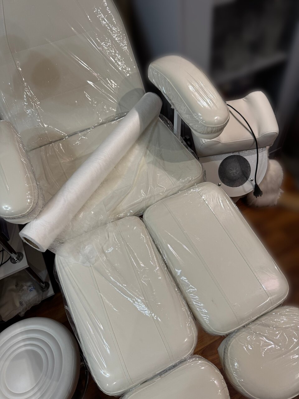 В подарок отдам защитные чехлы на кресло и одноразовые пеленки для клиентов.