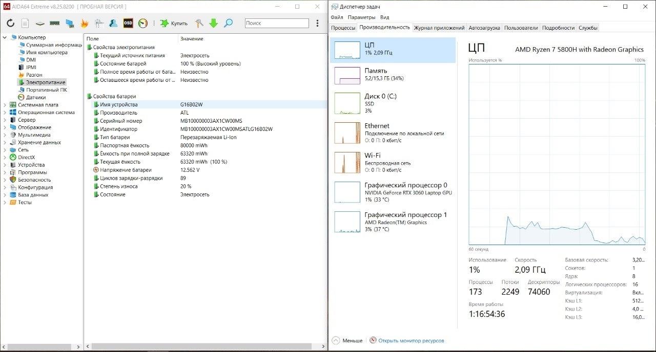 • Видеокарта: NVIDIA GeForce RTX 3060 (130W — полноценная версия)