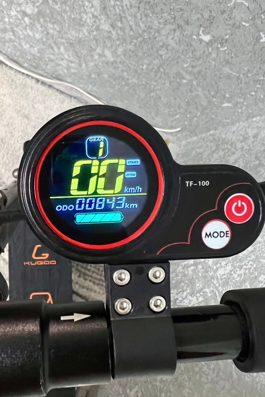 Надпись «Kugoo» на рулевой стойке стёрта и заклеена карбоновой пленкой.