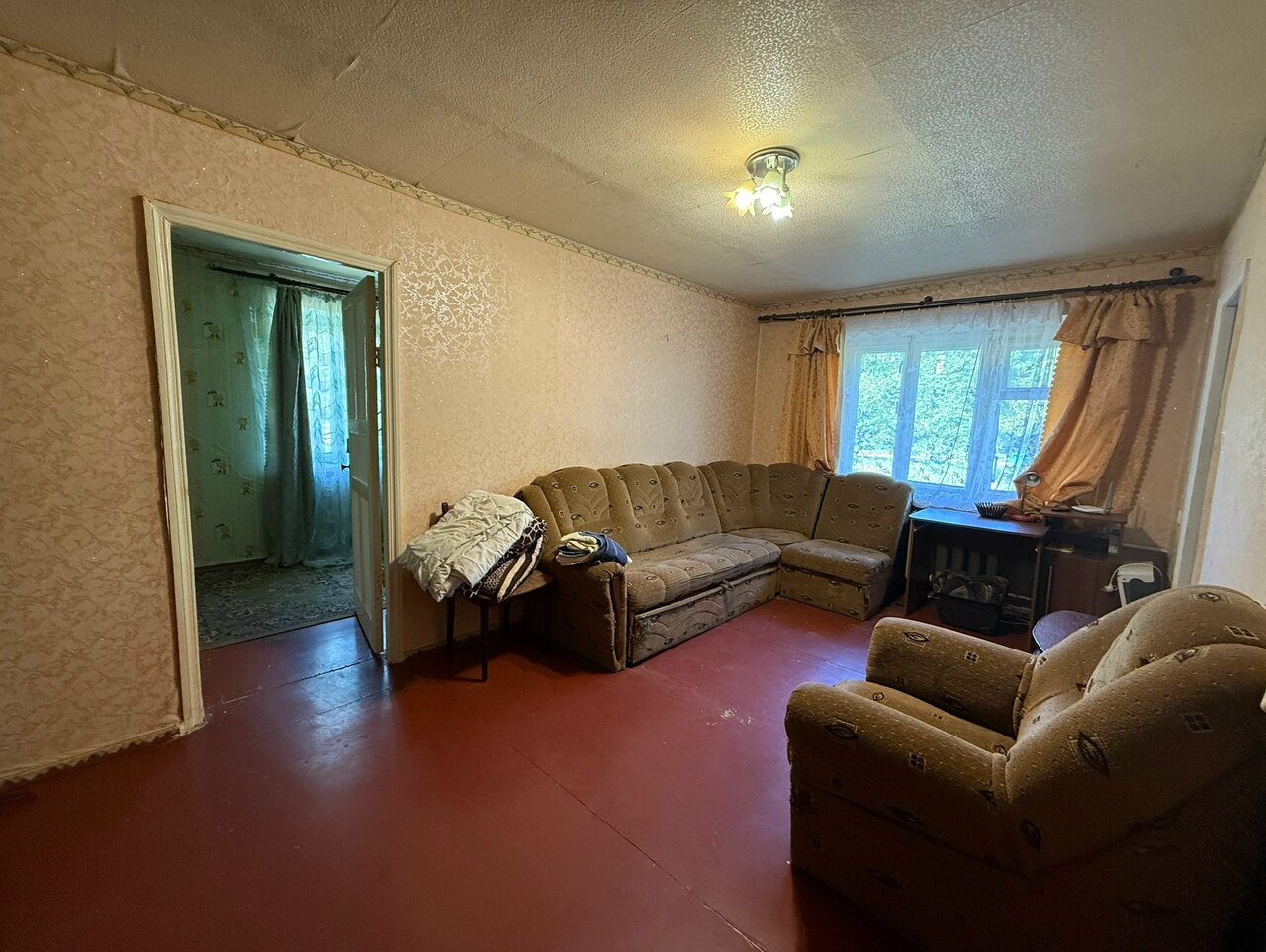 Жилое состояние, общая 43.1., комнаты проходные. Санузел совместный, газовая колонка, мебель остается. Цена 1.400.000 рублей + ан.