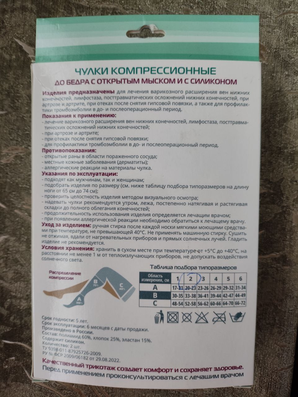 2. Чулки компрессионные до бедра. В использовании не были, не подошел размер.