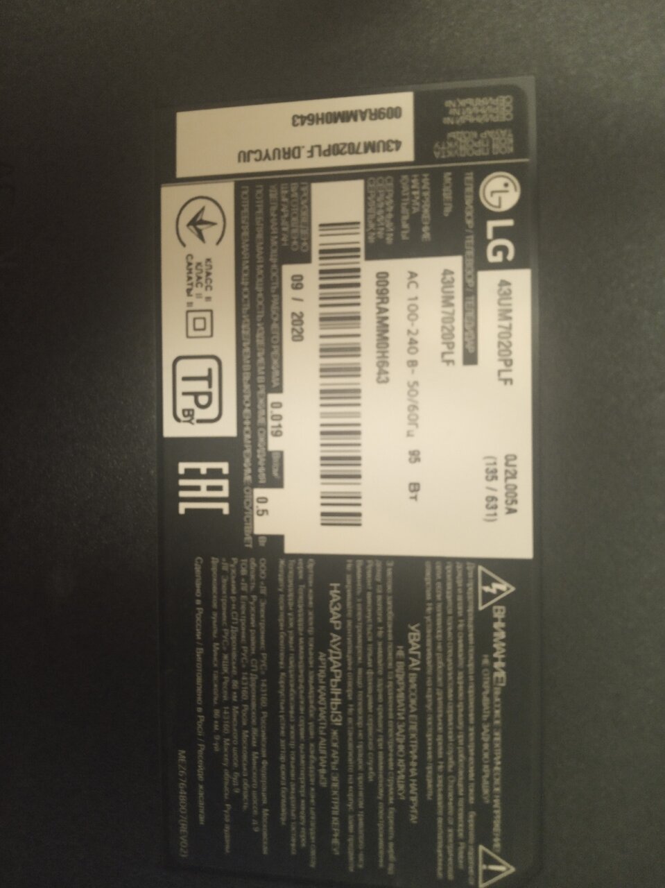 Продам рабочий телевизор LG 43″ 2020 года выпуска. На экране присутствуют небольшие горизонтальные и вертикальные полосы. 4000 руб. Буденновский район, Цветочный. +79493010168