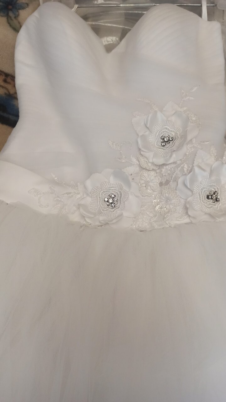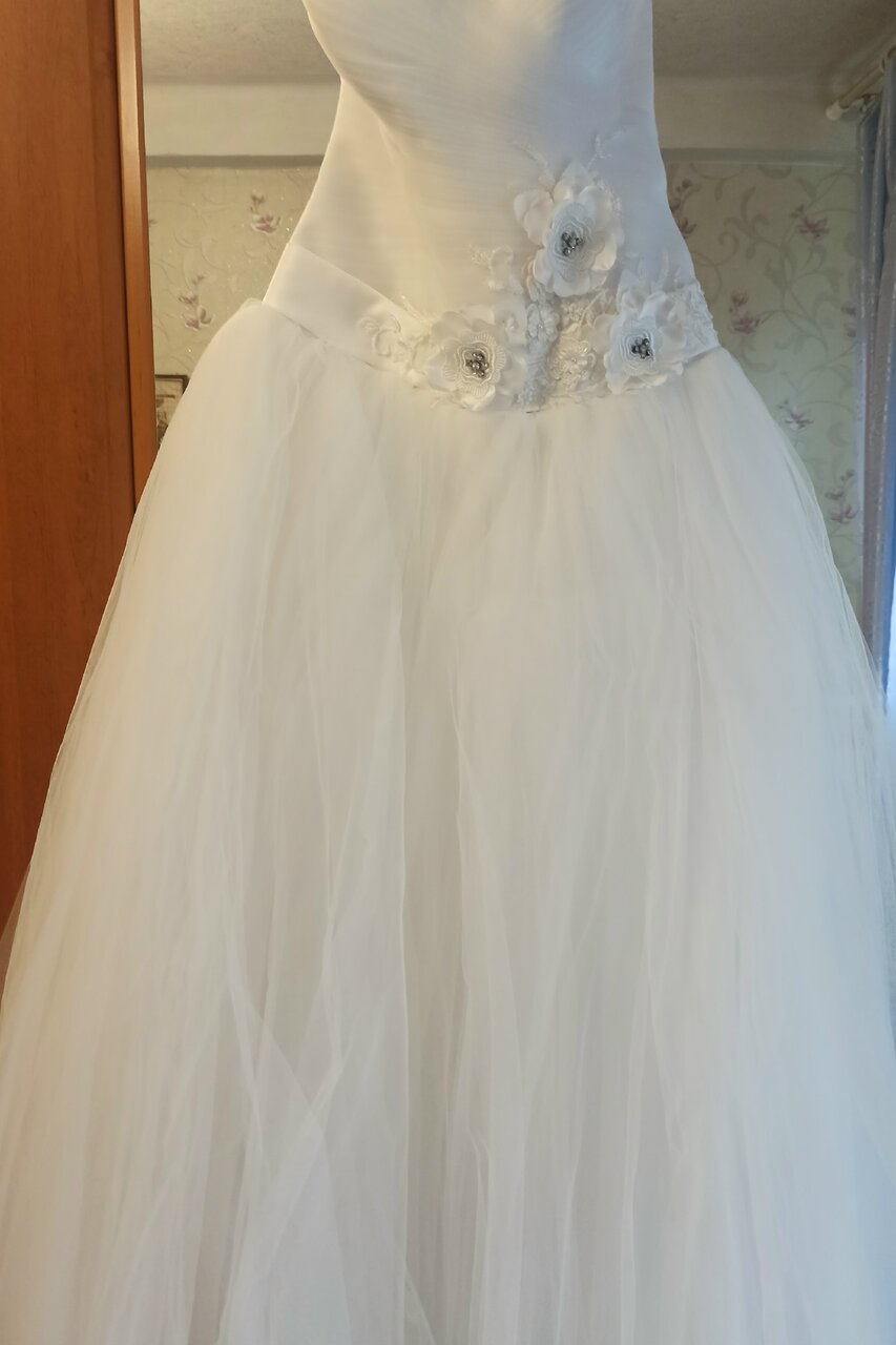 Продам свадебное платье, одевалась один раз, не венчаное, в подарок перчатки, размер 44-48, 5000 рублей,( торг) телефон+79493367530г.Горловка
