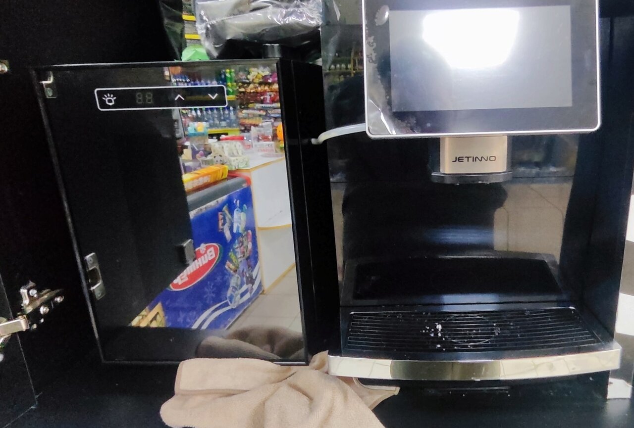 Экран ещё в пленке, сделал около 3500 чашек кофе, отдам ещё вместе с холодильником который указан на фото, цена 70к торг уместен