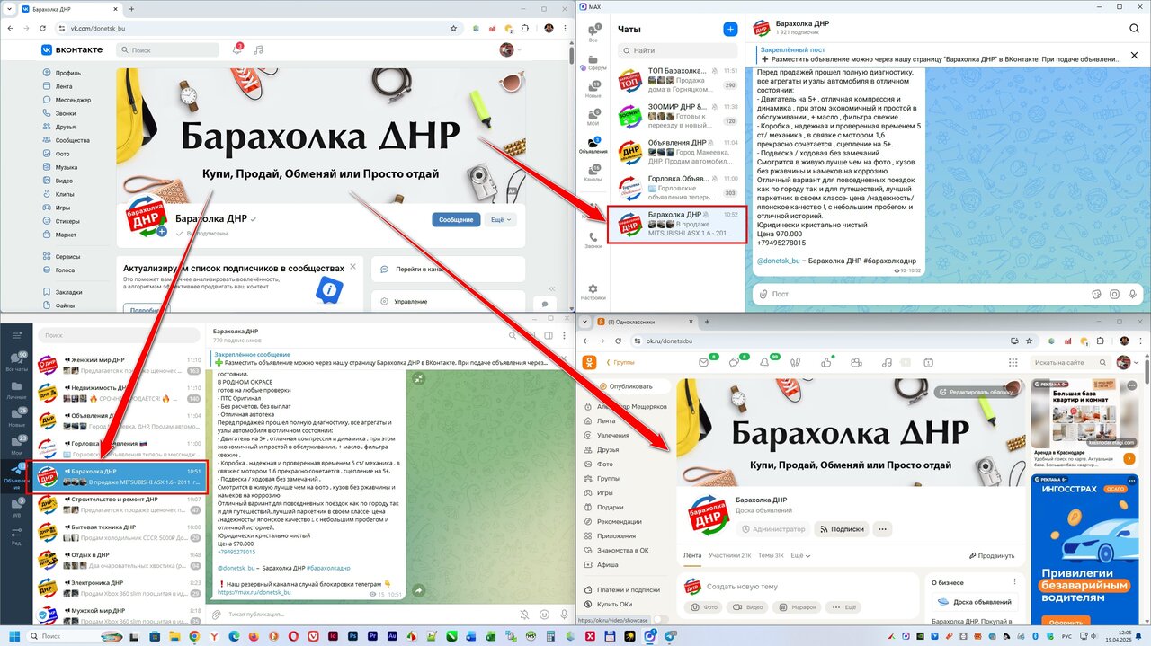 Помните: подавая объявление у нас в ВК, вы автоматически получаете публикацию в Telegram, Одноклассниках и MAX. Вам не нужно искать другие группы или платить отдельно за каждую.