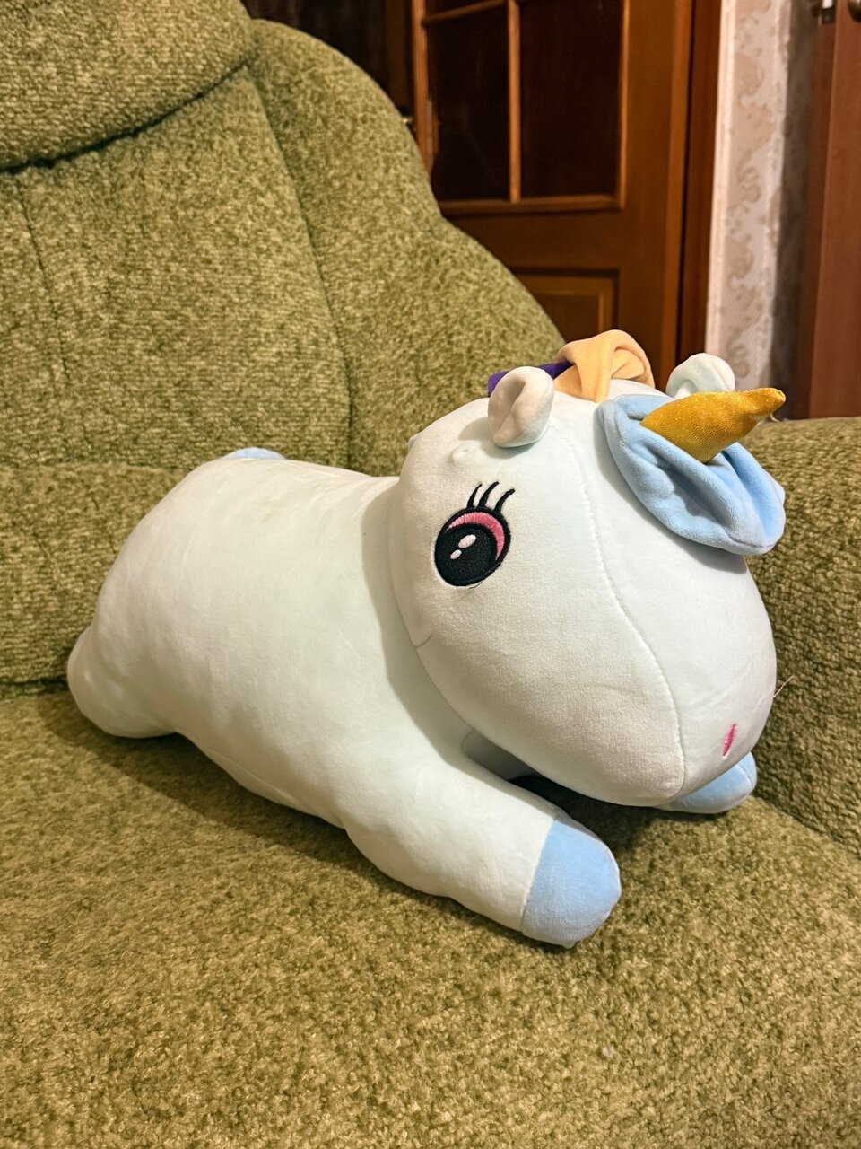 Мягкая игрушка-подушка с пледом внутри 160х100 состав хлопок, полиэстер цвет пледа голубой