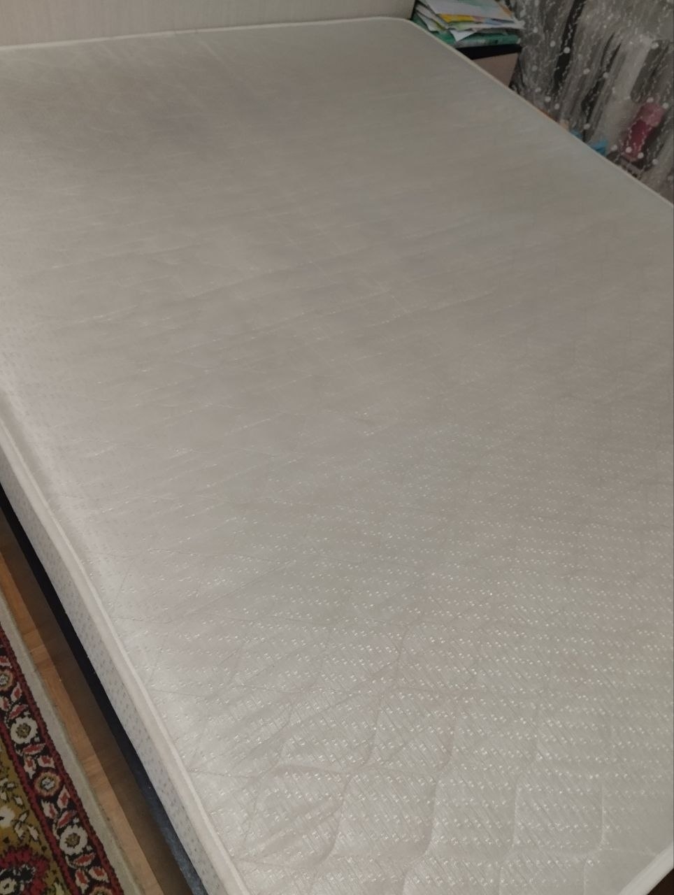 В отличном состоянии, в использовании была очень мало. Добротная качественная кровать.