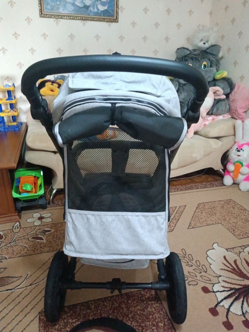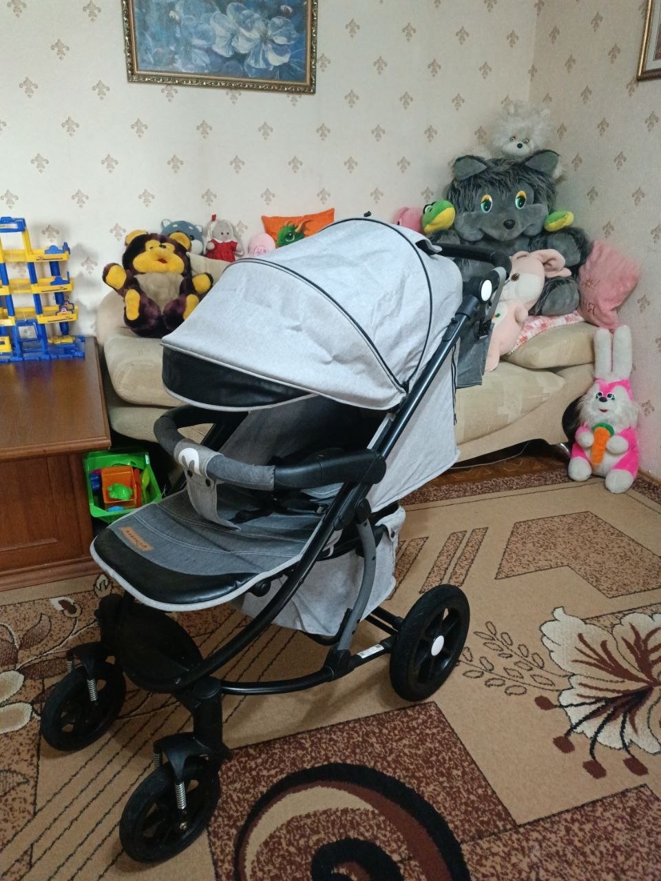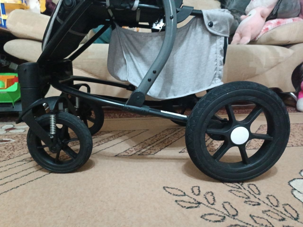 Продам коляску. В хорошем состоянии. Большой капюшон. Съемный зимний чехол на ножки. Большие колеса. Устойчивые к проколам. Диаметр передних колес: 20см. Диаметр задних колес: 30см. Передние колеса поворотные, также их можно зафиксировать в прямом положении. Ножной тормоз на задних колесах. Все колеса съемные. Спинка регулируется (3 положения). Регулируемые подножка и родительская ручка. Ремни безопасности. Имеется вентиляционное и смотровое окошки. Изнутри немного поцарапан бампер (на фото видно). Коляска очень удобная, маневренная с хорошей проходимостью. В комплекте идет сумка, дождевик и москитная сетка.
