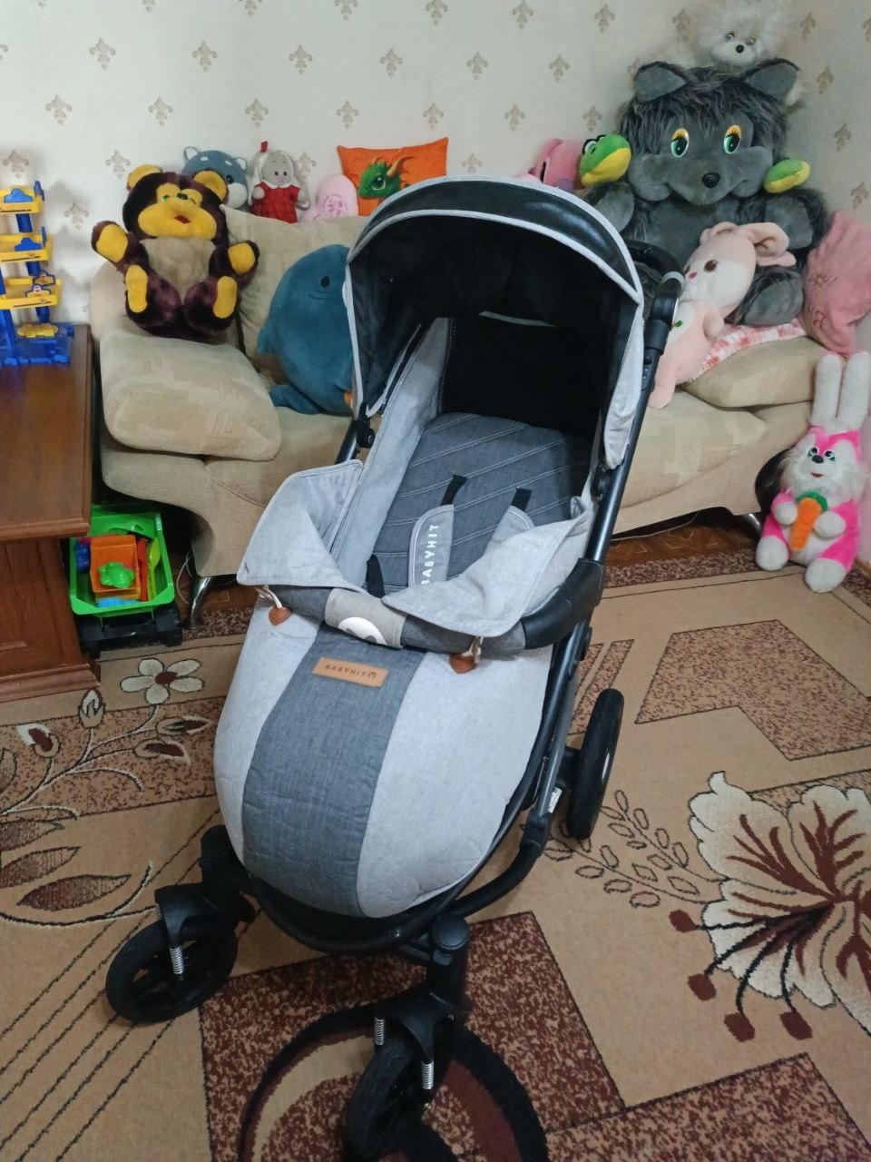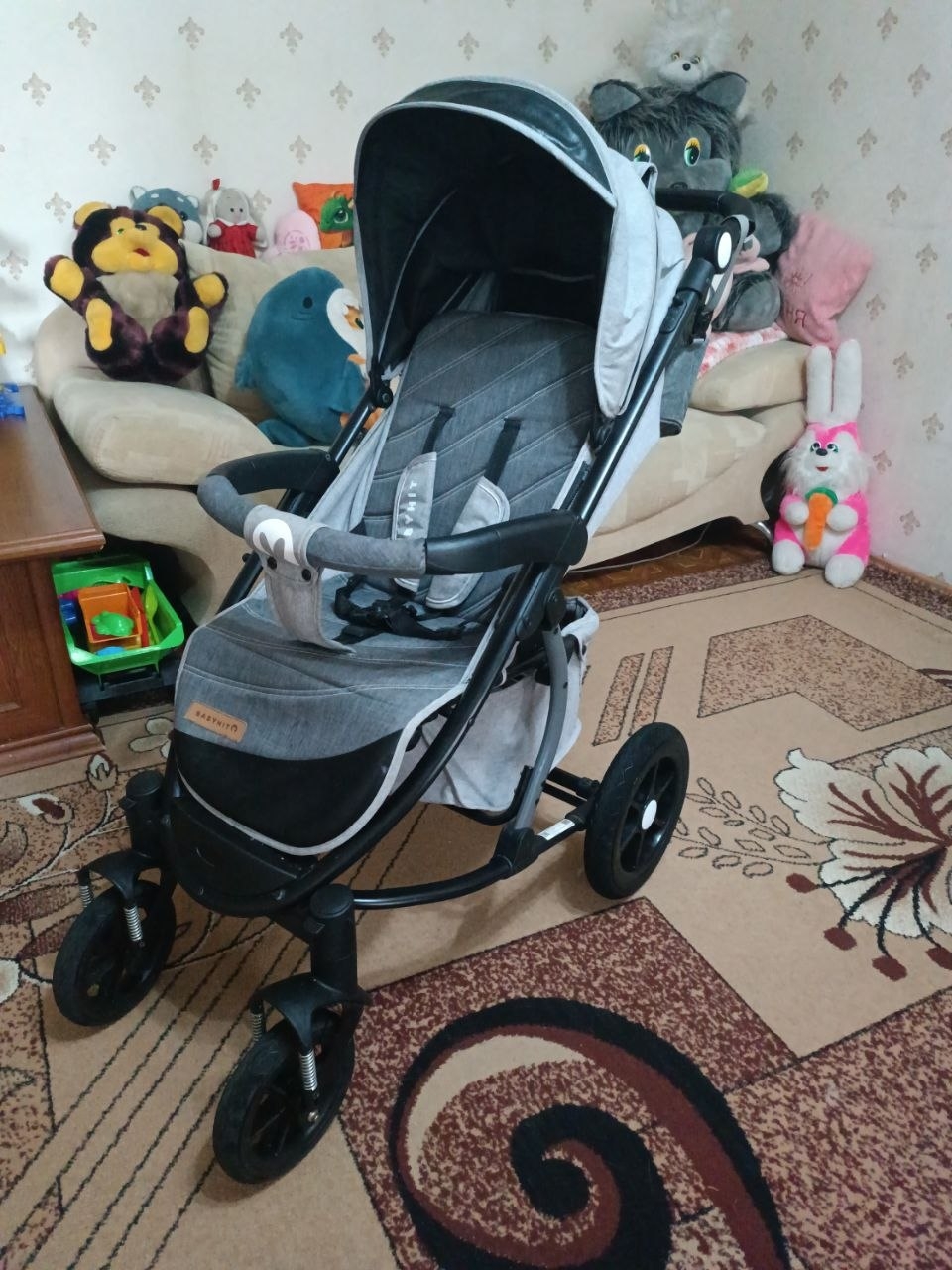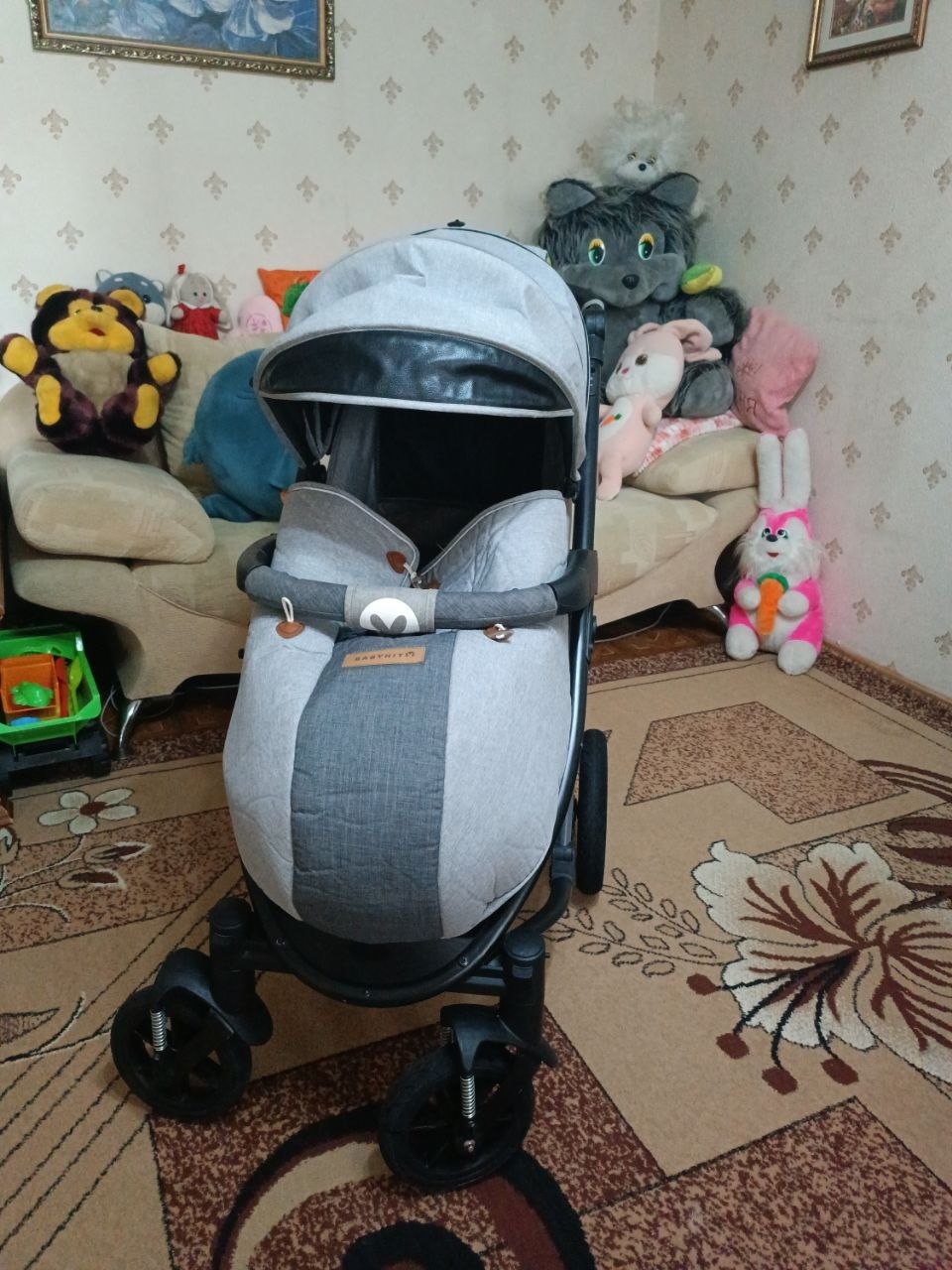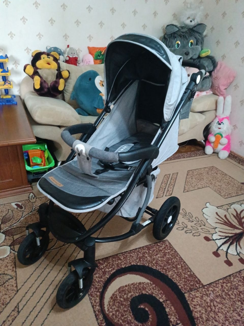Продам коляску. В хорошем состоянии. Большой капюшон. Съемный зимний чехол на ножки. Большие колеса. Устойчивые к проколам. Диаметр передних колес: 20см. Диаметр задних колес: 30см. Передние колеса поворотные, также их можно зафиксировать в прямом положении. Ножной тормоз на задних колесах. Все колеса съемные. Спинка регулируется (3 положения). Регулируемые подножка и родительская ручка. Ремни безопасности. Имеется вентиляционное и смотровое окошки. Изнутри немного поцарапан бампер (на фото видно). Коляска очень удобная, маневренная с хорошей проходимостью. В комплекте идет сумка, дождевик и москитная сетка.