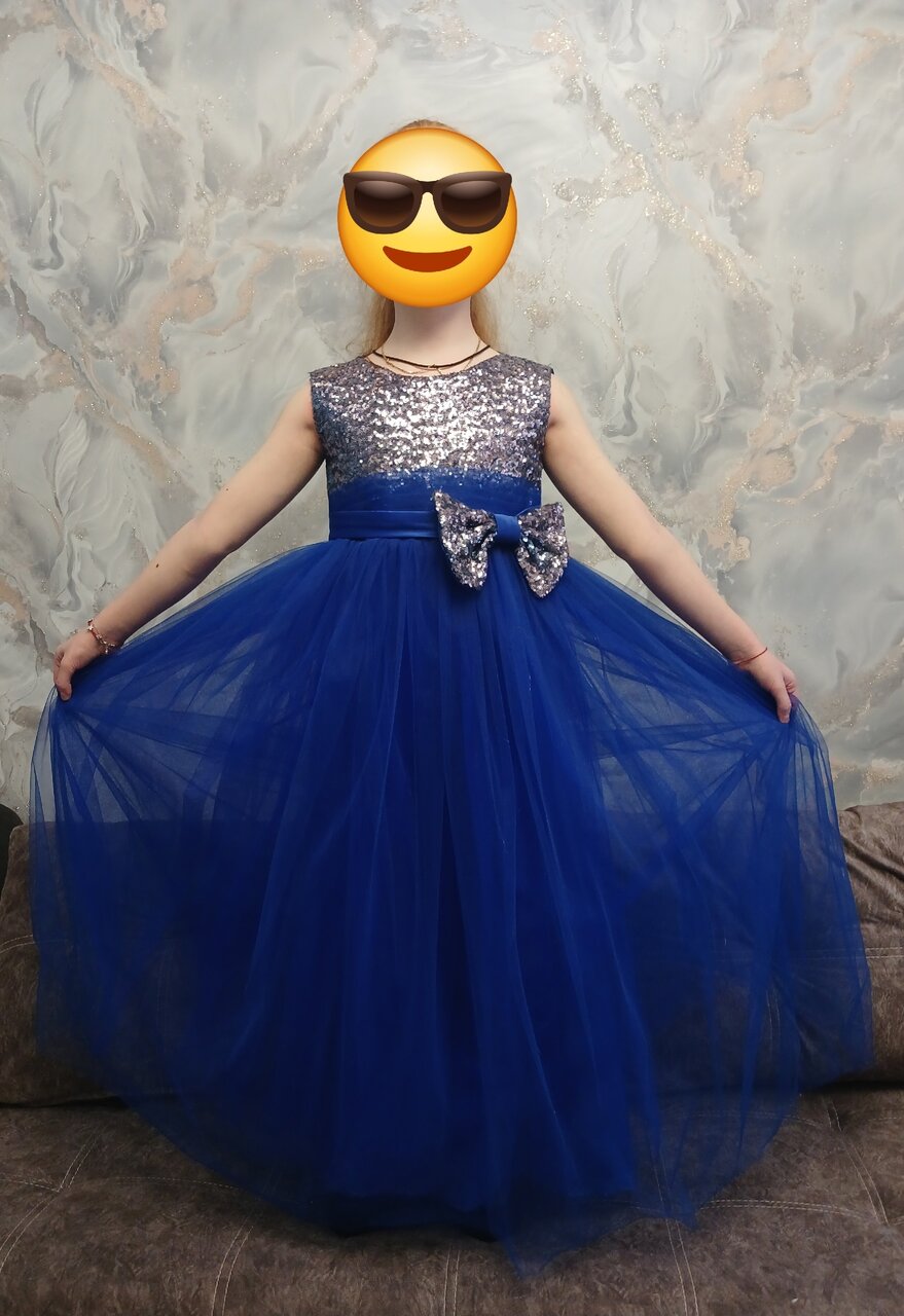 Синее платье: верх — паетки, низ — фатин. Одето лишь для примерки. 5000рублей + торг.