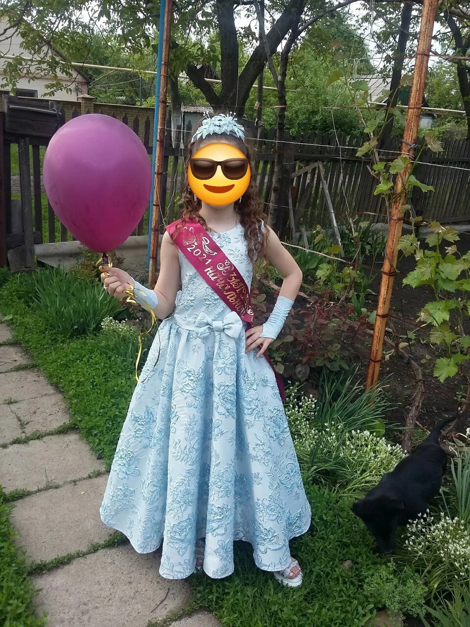 Нежно-голубое платье с цветами 3D-эффект + перчатки + заколочка. 5000 рублей + торг.