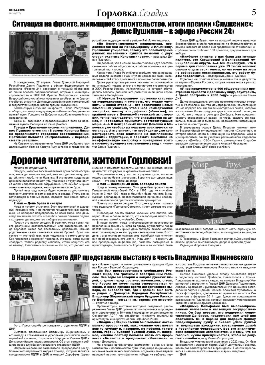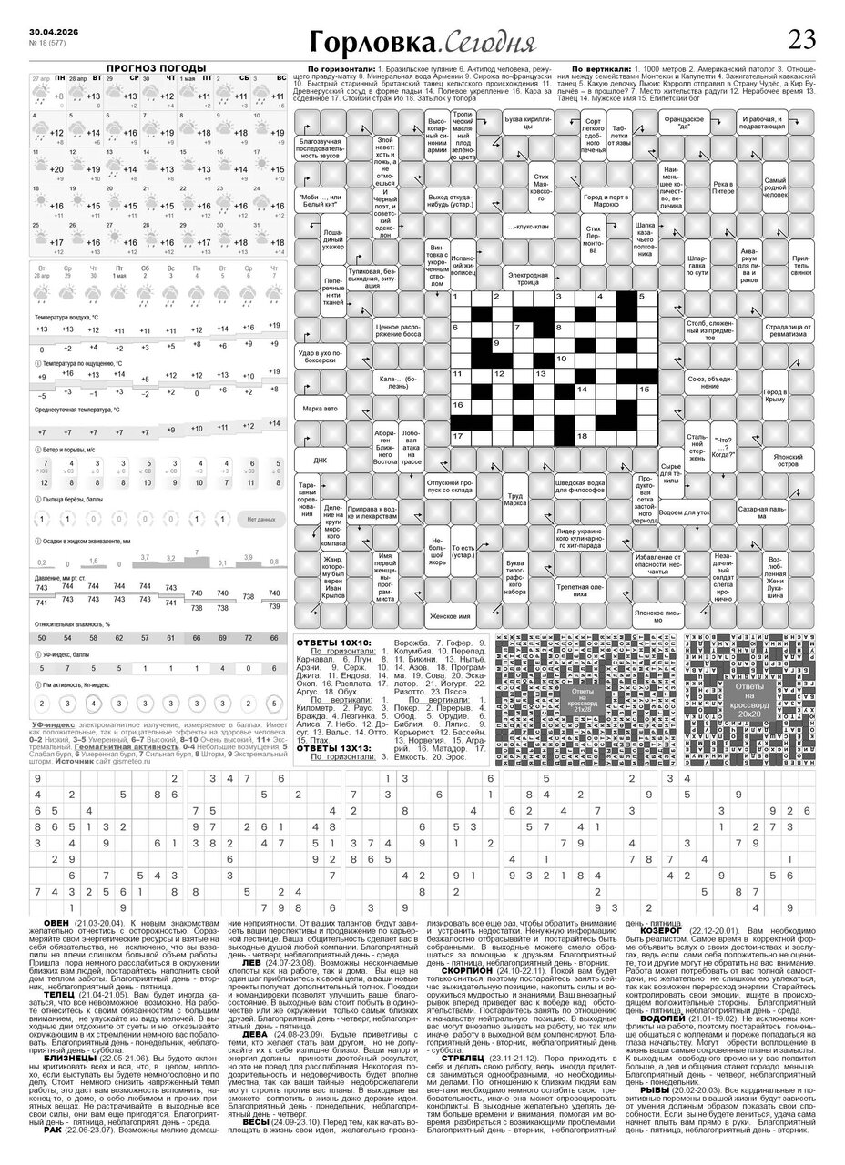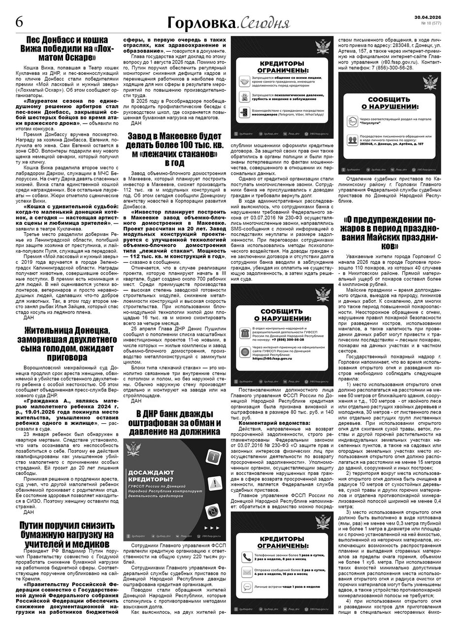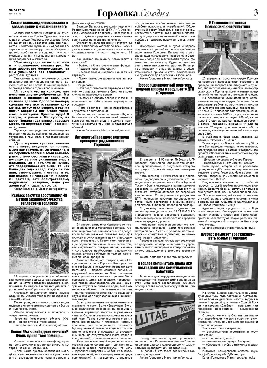 🗞 30 апреля 2026 года, вышел новый выпуск общественно-информационной газеты «Горловка.Сегодня» 🇷🇺 №18 (577). 24 полосы, тираж 1900 экз., газета выходит каждый четверг. 📰 https://max.ru/gorlovka