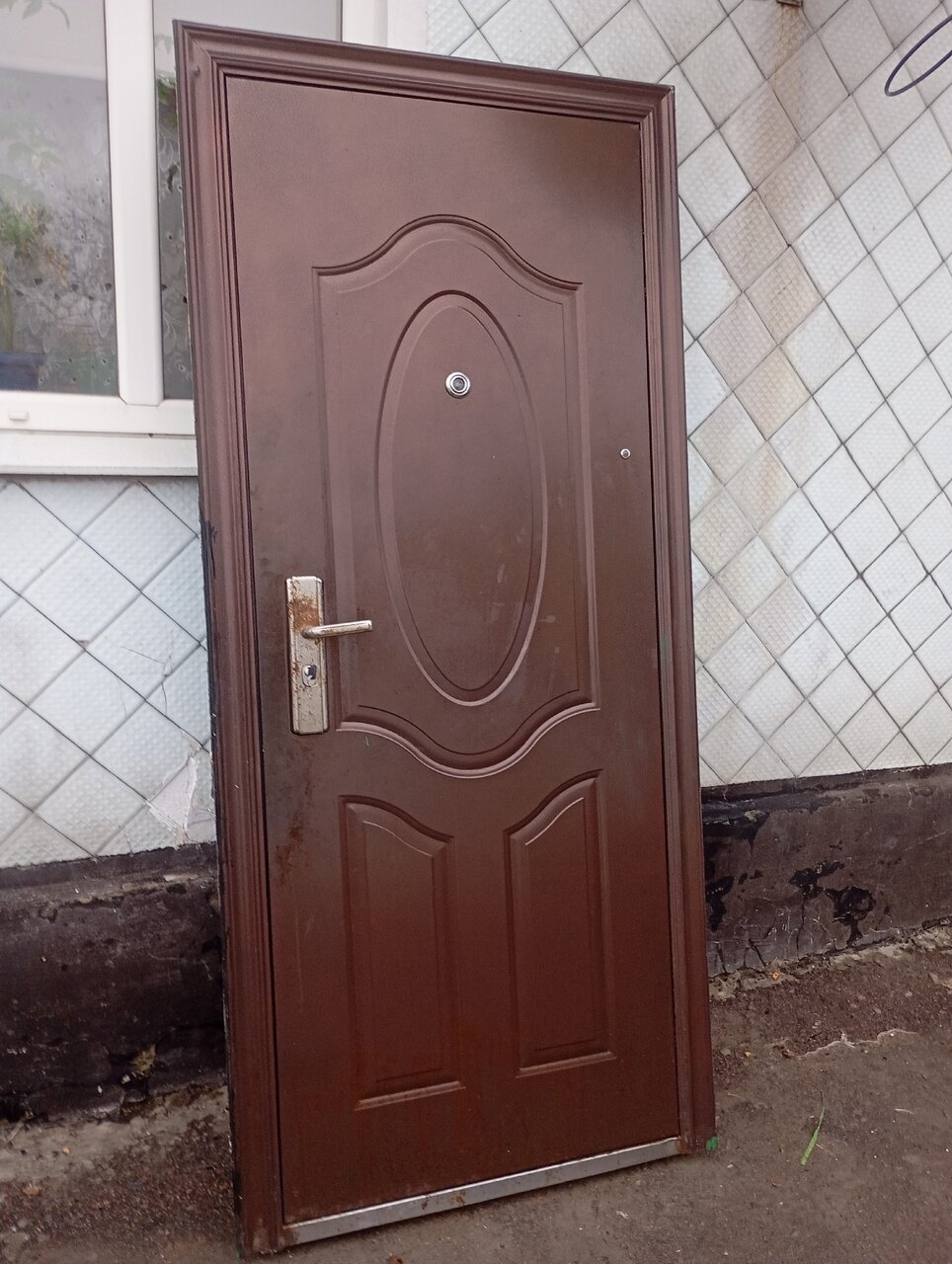 Продам металлическую дверь б/у.по двери пошла ржавчина,сквозных дыр нет.замок рабочий.размеры 860-2050 правое открывание.3000 рублей.макеевка +79493574662