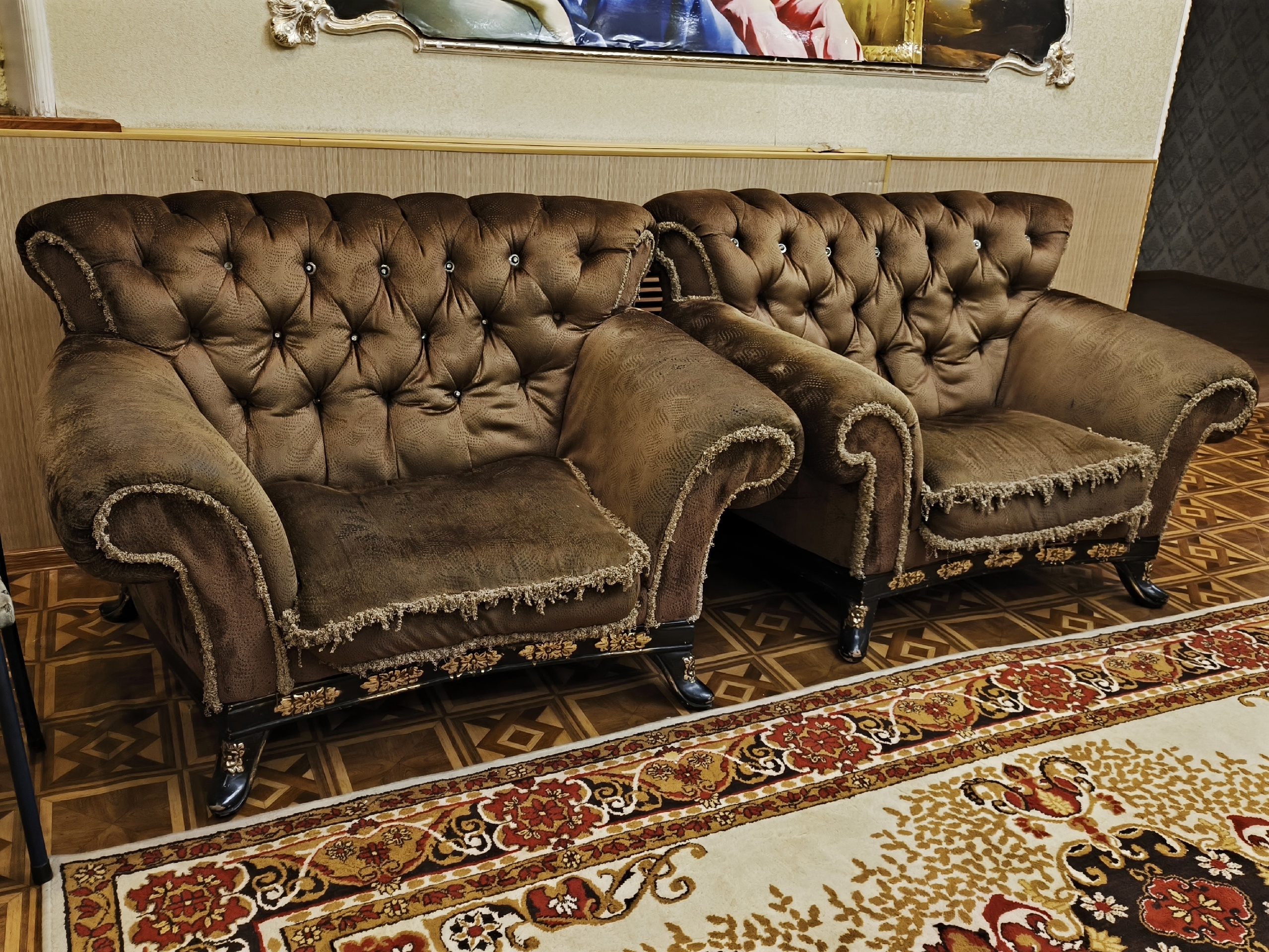 Продам Шикарные кресла На деревянном Каркасе. В хорошем состоянии. Цена 25000р за оба. Донецк, Ленинский район +79493687962